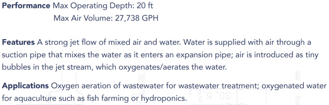 Oxygen Aeration Pump_Data Table